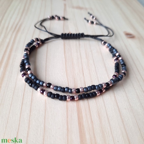 Viaszolt zsinóros, fekete és szürke színű karkötő