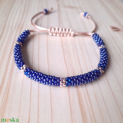 Viaszolt zsinóros, fényes liláskék színű karkötő