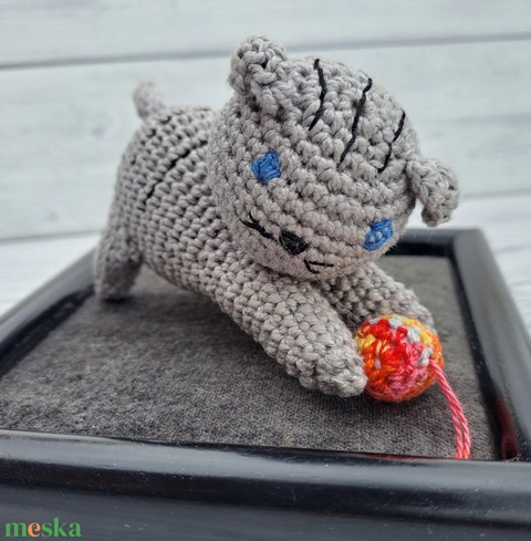 Horgolt szürke macska játék