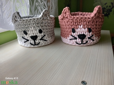 Horgolt cicás tároló