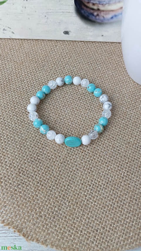 Ásvány karkötő-hegyikristály, howlit, kagylógyöngy
