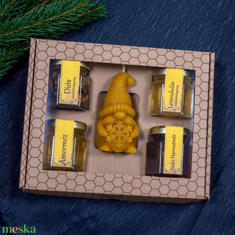 - Anyaga: méz, méhviasz, üveg, díszdoboz