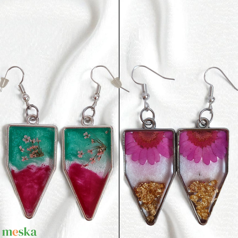Két Színes Műgyanta Fülbevaló Variáció: Erdei Gyümölcs vagy Trópusi Napfény Préselt Virágokkal