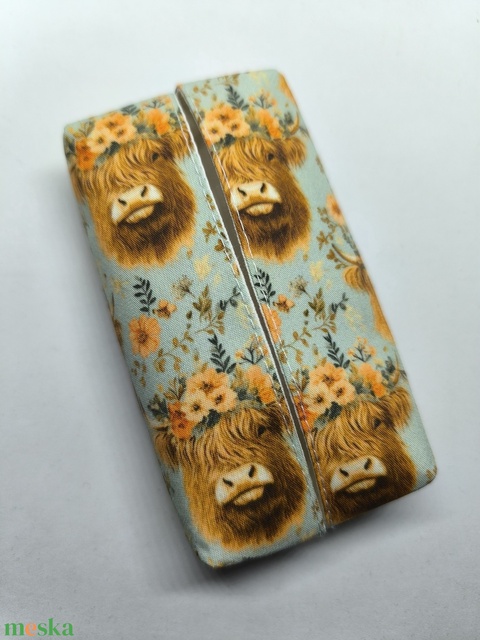Skót-felföldi marha mintás mentazöld alapon-bélelt papírzsebkendő tartó