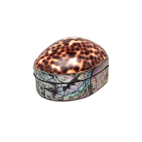 Barna-fehér pöttyös kagyló ékszertartó doboz egyedi mintás 6×5 cm