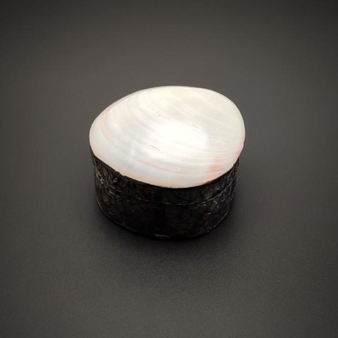 Szürke kagyló ékszertartó doboz elegáns ajándéktartó 7,5×7 cm