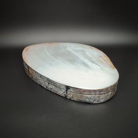 Pávakagyló ékszertartó doboz krém színben exkluzív díszdoboz 18 cm