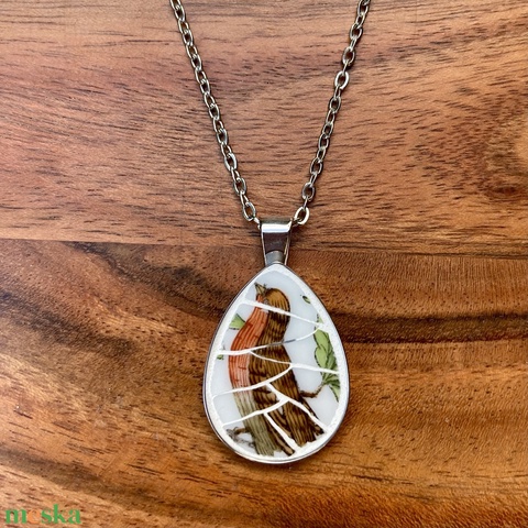 Herendi mentett darabok - madaras porcelán nyaklánc - nemesacél csepp medálos
