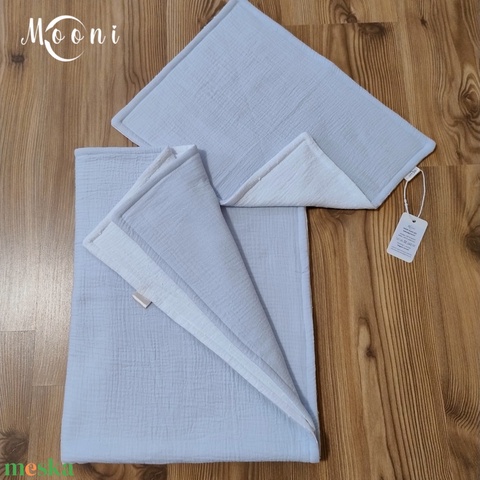 Bélelt dupla géz baba ágynemű szett (világoskék-fehér)