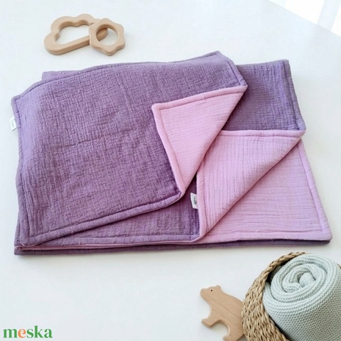Baba ágynemű szett kiságyba – bélelt dupla géz (sötét mályva-rózsaszín)