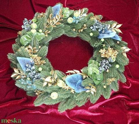 - Anyaga: szőlővessző alap, műfenyő ágak, termések, levelek, gyöngyök, csillogó ágak, tűtők, bogyók