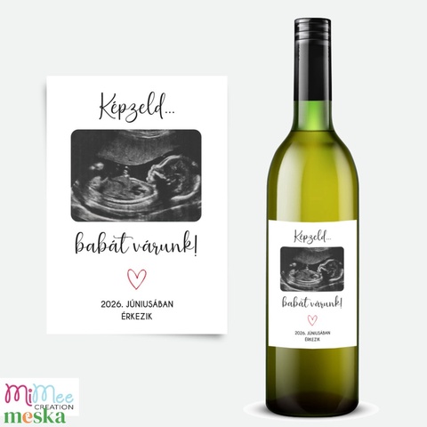 Baba bejelentő boros címke, bababejelentő üveg matrica ultrahang fotóval, személyre szabható szöveggel