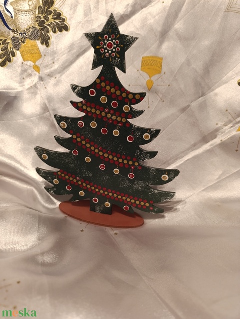 Karácsonyfa asztaldísz -bordó, arany