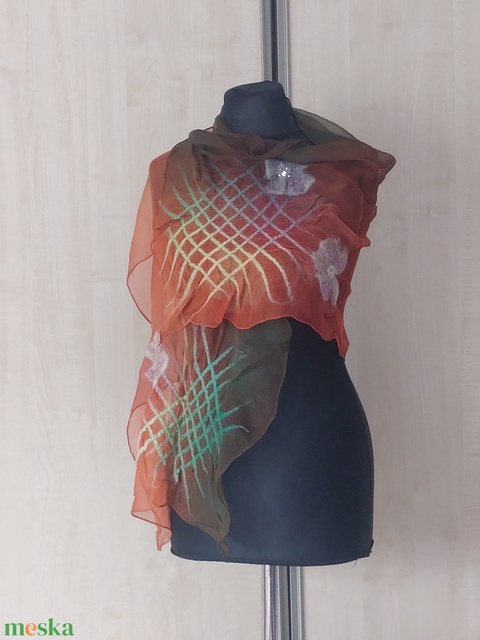 - Anyaga: schiffon, selyem, merino, gyapjú, gyöngy, schiffonselyem