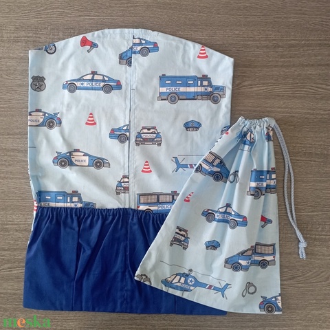 Ovis zsák szett - rendőrautó mintás - egyedi ovis zsák szett