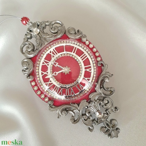Kézzel Készített Sötét Rózsaszín Bársony Óradísz 8 cm – Elegáns, Romantikus Vintage Karácsonyi Dekoráció