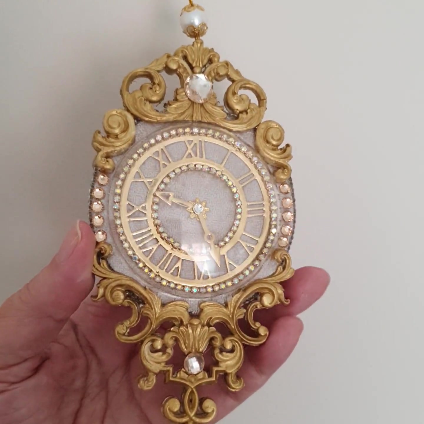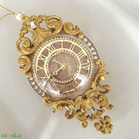 Kézzel Készített Bézs Bársony Óradísz 8 cm – Elegáns, Finom Vintage Karácsonyi Dekoráció a Fényes Ünnepekre