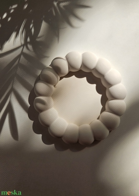 FONTOS: Ne tedd kérlek mosogatógépbe. A felülete egy enyhén nedves, puha törlőruhával tisztítható. Hő hatására enyhe elszíneződés előfordulhat, ezt kérlek vedd figyelembe, ha gyertyát helyezel rá. Étellel való közvetlen érintkezésre nem ajánlott – nem azért, mert káros, hanem mert nincs erre vonatkozó tanúsítványa, és a felület nem erre lett kialakítva.