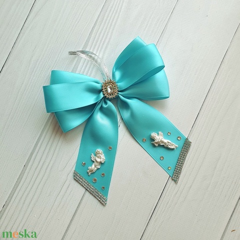 10 darabos türkiz selyem karácsonyi masni angyal díszekkel és brokkal – kézzel készített, személyre szabható