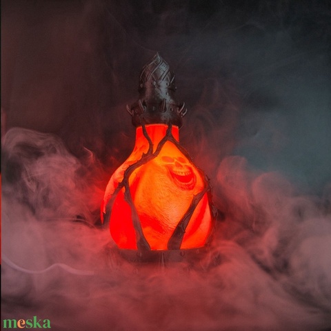 Doom Elixír – Lámpa a Másvilágból: egy különleges tárgy, ami úgy néz ki, mintha egy sötét varázsló zárta volna palackba a lelkek sikolyát. A vérvörösen izzó, borzongató koponyákkal díszített lámpa nemcsak világít – de történetet mesél, hangulatot teremt és atmoszférát ural.