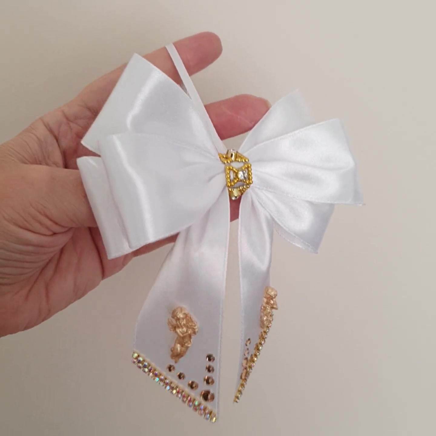 10 darab kézzel készített fehér karácsonyi masni arany angyalokkal és strasszokkal – elegáns ünnepi dekoráció