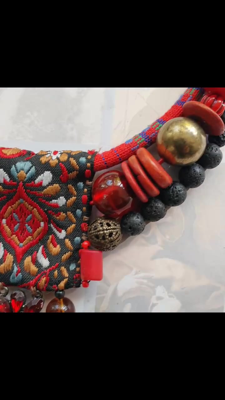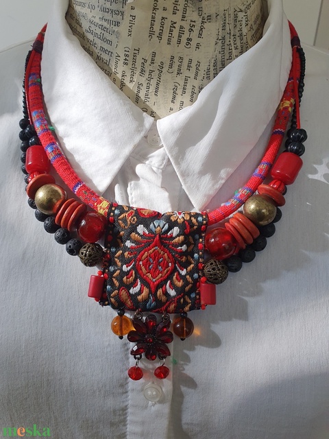 - Anyaga: textil zsinór, bőrszíj, antikolt szerelékek, üveggyöngy, fa lapkák, lávakő gyöngy