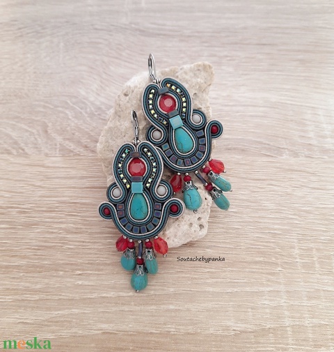 - Anyaga: sújtás zsinór, swarovszki kristály, japán kása, cseh csiszolt gyöngy, ragasztó, cérna, nikkel mentes fémszerelék, cseh kaboson