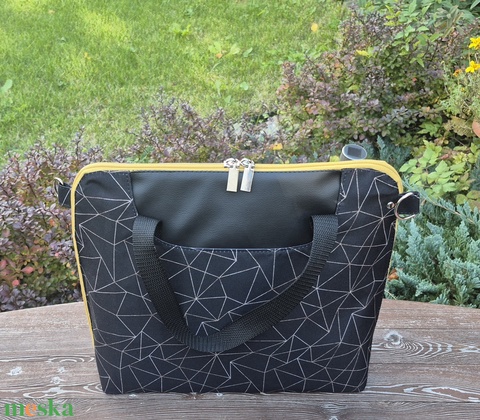 - Anyaga: gyöngyvászon, cipzár, táskamerevítő, műbőr