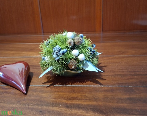 Kicsi kerámiatálba készített karácsonyi dekoráció