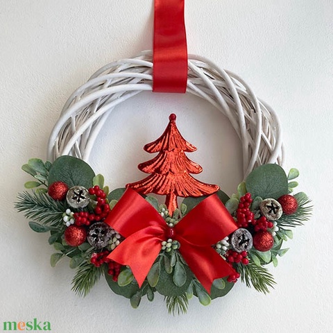 - Anyaga: koszorú alap, gömbök, műfenyő