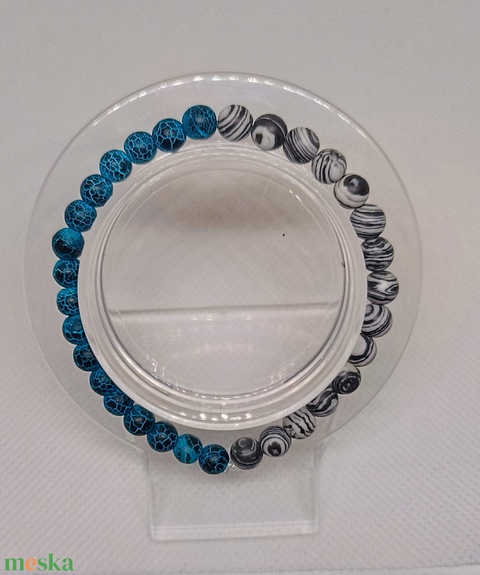 - Anyaga: színezett gyöngyök, rugalmas damil