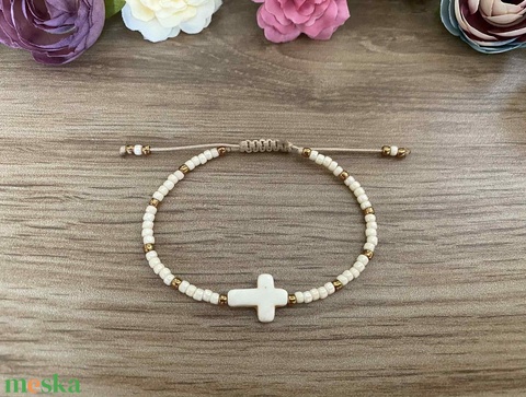 - Anyaga: howlit kereszt, japán kásagyöngy, viaszos zsinór