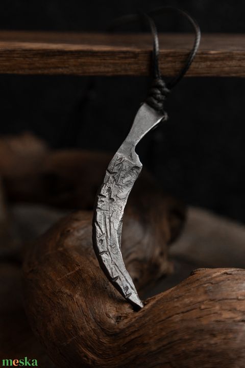 ékszer, nyaklánc, medál, kovácsolt, sarló, boszorkány, karom, penge, cosplay, larp, wicca, hagyományőrző, pogány