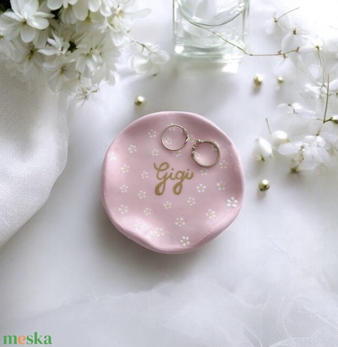 Ékszertartó tálka egyedi feliratos,kézzel festett virágmintával és névvel személyre szóló ajándék