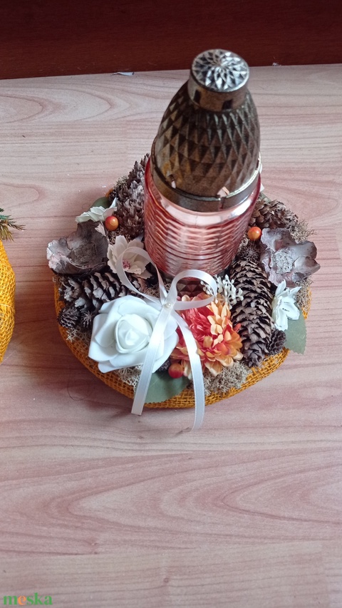 Mindenszenteki koszorú mécsessel 20 cm - narancs