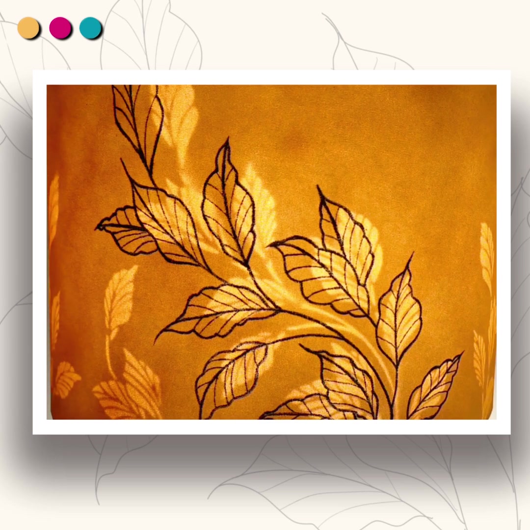 Egyedi tervezésű, aranysárga alapon levél mintás ÁLLÓlámpabúra