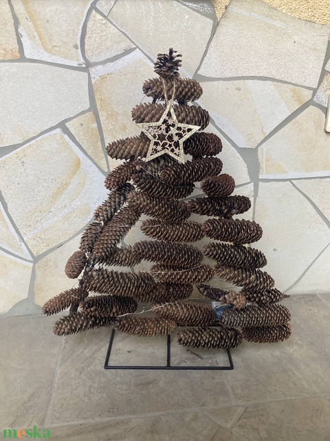 Kültéri karácsonyi stilizált tobozfenyő izzósorral, natúr csillaggal, tovább díszíthető - MINI