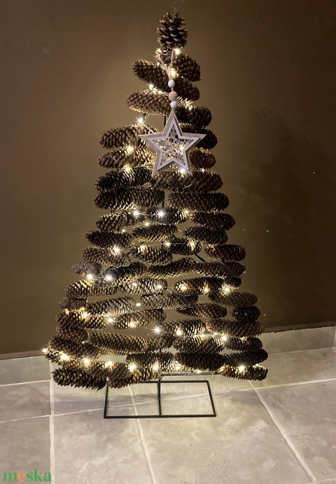 Kültéri karácsonyi stilizált tobozfenyő izzósorral, natúr csillaggal, tovább díszíthető - MIDI