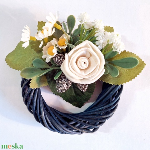 - Anyaga: műnövény, szárított termés, fonott vessző koszorúalap