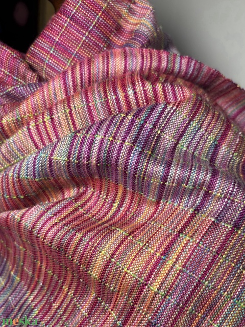 Ha egy olyan ragyogó sálat keresel, amely tökéletes eleganciát és meleget biztosít, ez a kézzel szőtt Málna Merino - Selyem kendő tökéletes választás. Gyönyörű fénye van, és kellemes a tapintása. A kendő szövésének bonyolult technikája egyedi, textúrált mintát hoz létre, így ez a kiegészítő valóban egyedülálló bármely ruhatárban.