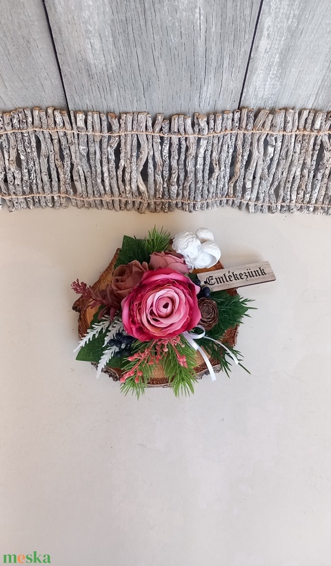 Emlékezünk Rózsaszín Rózsával- Kegyeleti Dísz/Sírdísz/Őszi Asztaldísz/Bogyós Asztaldísz /Asztaldísz