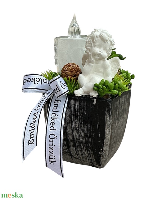 Kicsi urnadísz ledes mécsessel és angyalkával