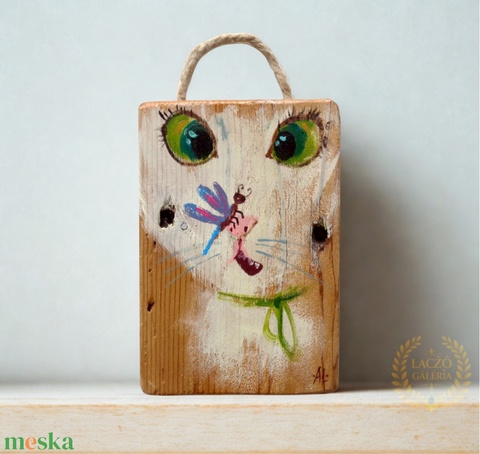 Meglepke - Laczó Ágnes kortárs festő/grafikus művész- Eredeti Akril Festmény, Macska, Cica