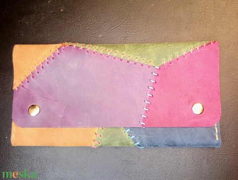 Bohèm patchwork bőr dohánytartó cigipapír zsebbel