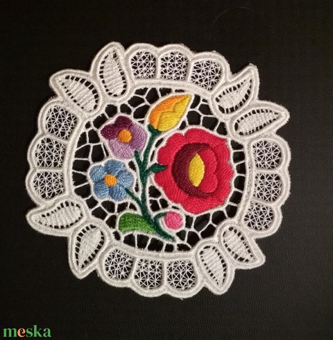 - Anyaga: pamut vászon, pamut hímzőfonal, pamut gépihímző cérna