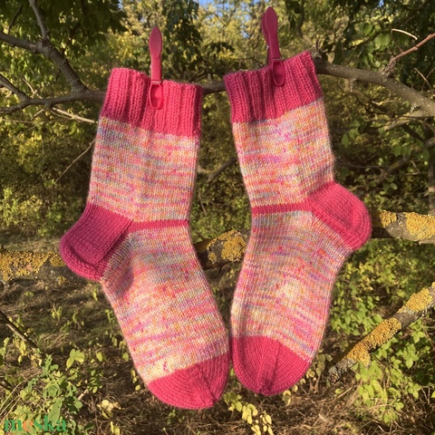 Kézzel kötött gyapjúzokni „Rózsafesztivál” Méret: 39–40