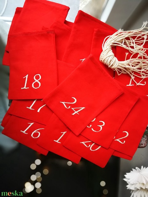 Adventi kalendárium szett, géppel hímzett számokkal - 24 darabos szett