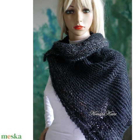 GEELONG KENDŐ - extravagáns kézzel kötött flitteres kasmír + mohair vállkendő, sálkendő