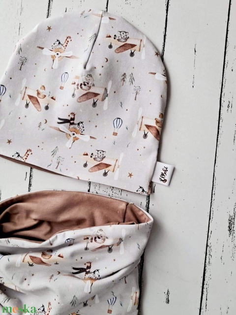 Állatkák repülővel sapka-sál szett (48-50 cm)