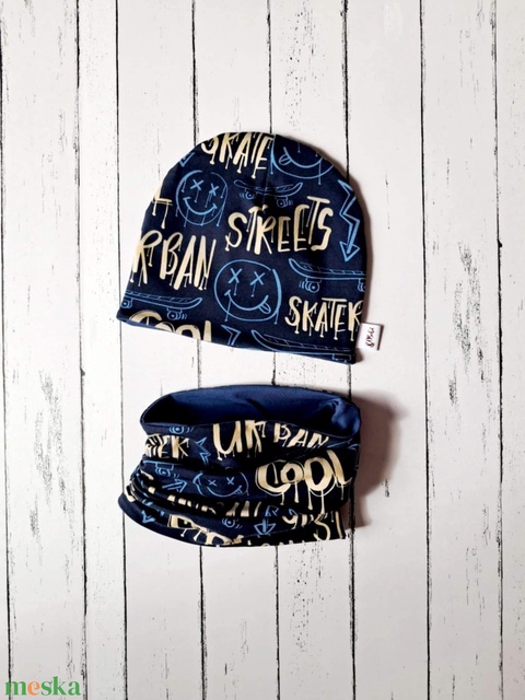 Absztrakt mintás sapka-sál szett (50-52 cm)